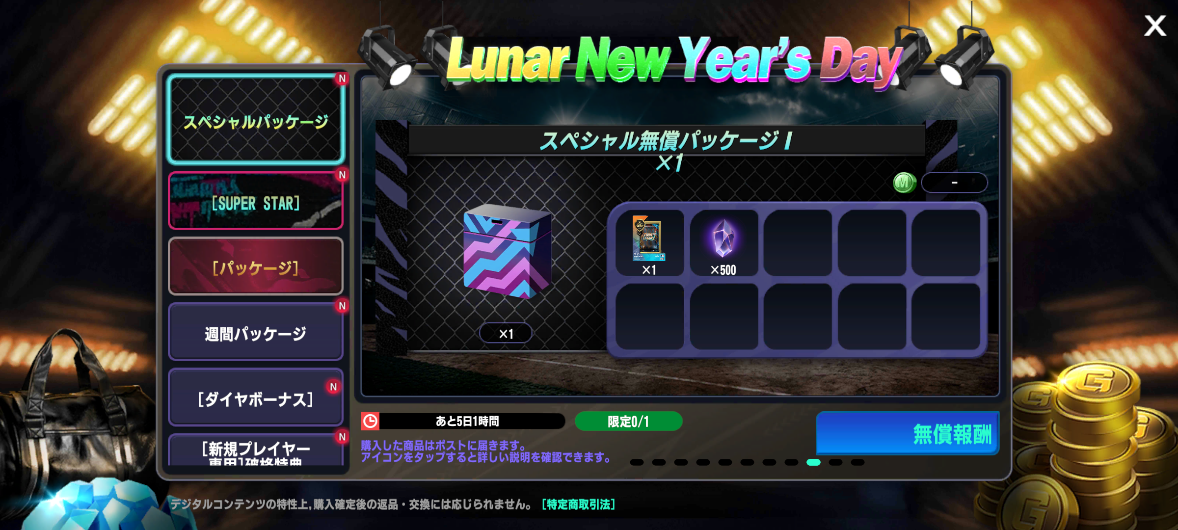 ・スペシャル無償パッケージは、[メインロビー] ⇒ [SPECIAL SHOP] ⇒ [SPECIAL]タブで受け取れます。