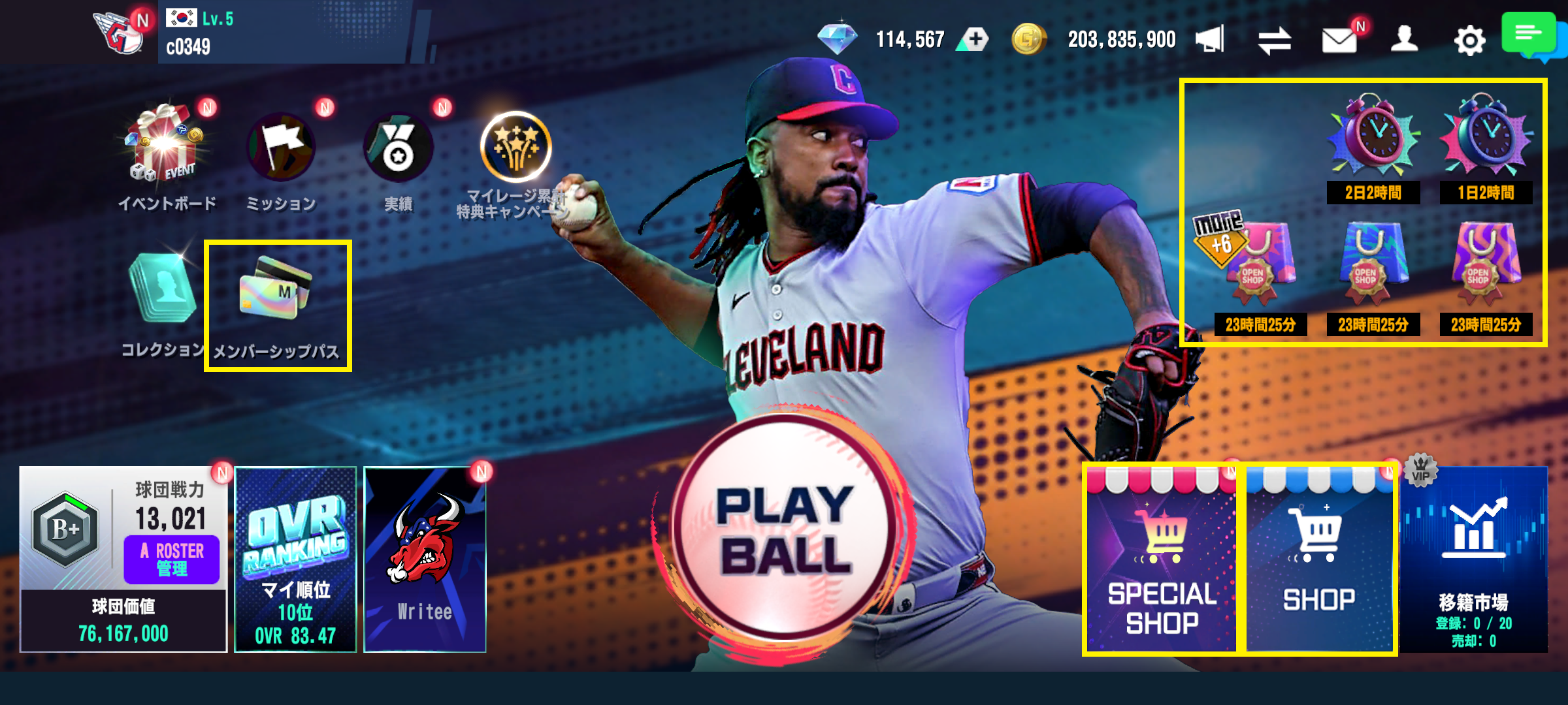 Step1. ロビー画面の[SHOP]、[おすすめ商品]、[クラブショップ]、[メンバーシップパス]、[プライムレジェンド]アイコンなどからショップに移動!