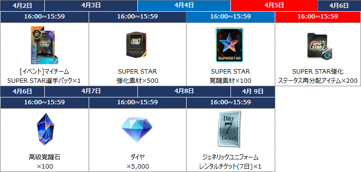・期間:4月2日 16:00 ~ 4月9日 15:59(JST)