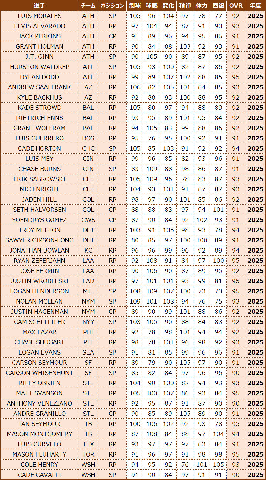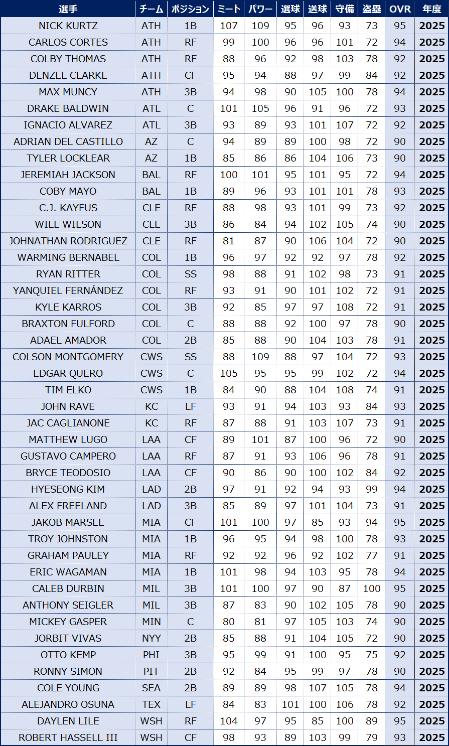・8月31日までのロースターおよび記録が反映された25シーズンLIVE選手カードがアップデートされます。