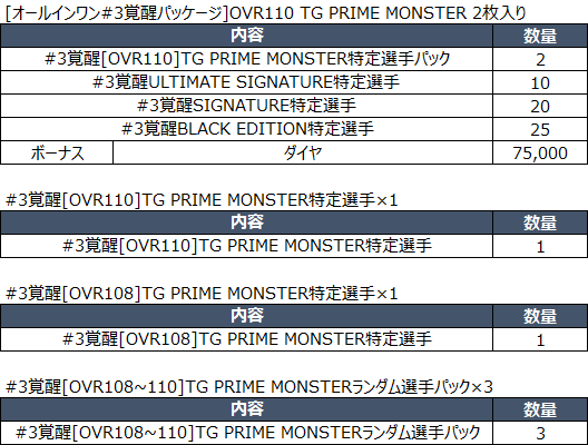 * [OVR110]TG PRIME MONSTER選手パックおよび[OVR108~110]TG PRIME MONSTER特定選手から獲得できる 。