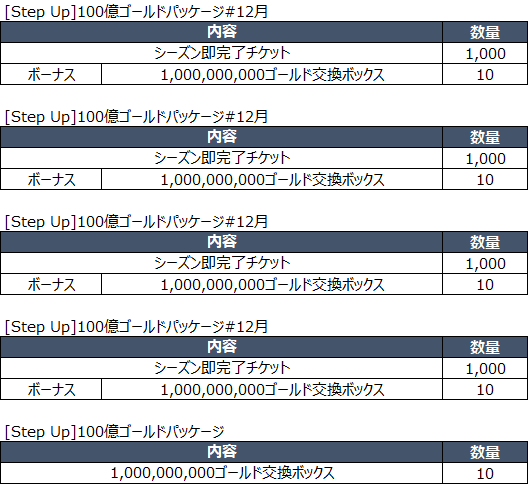 ・5種類のステップアップパッケージが追加されます。
