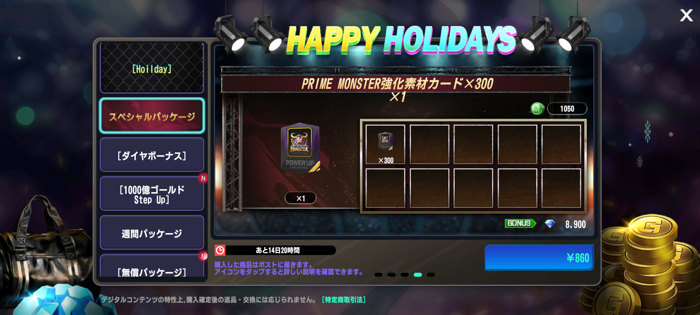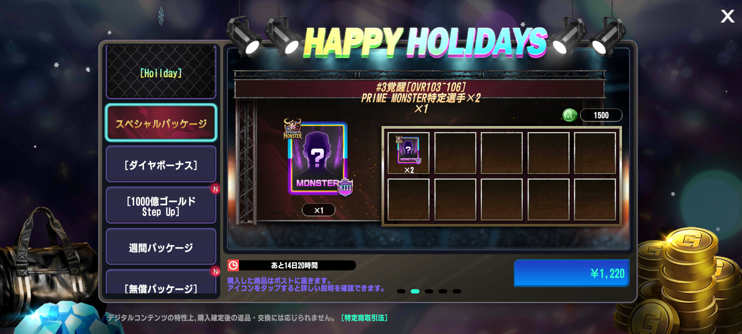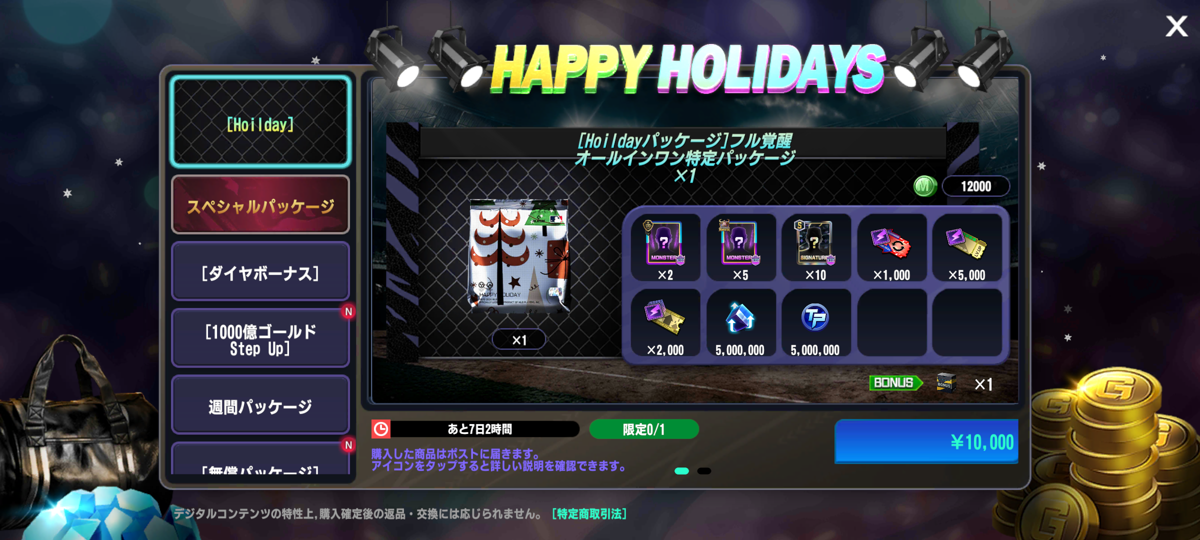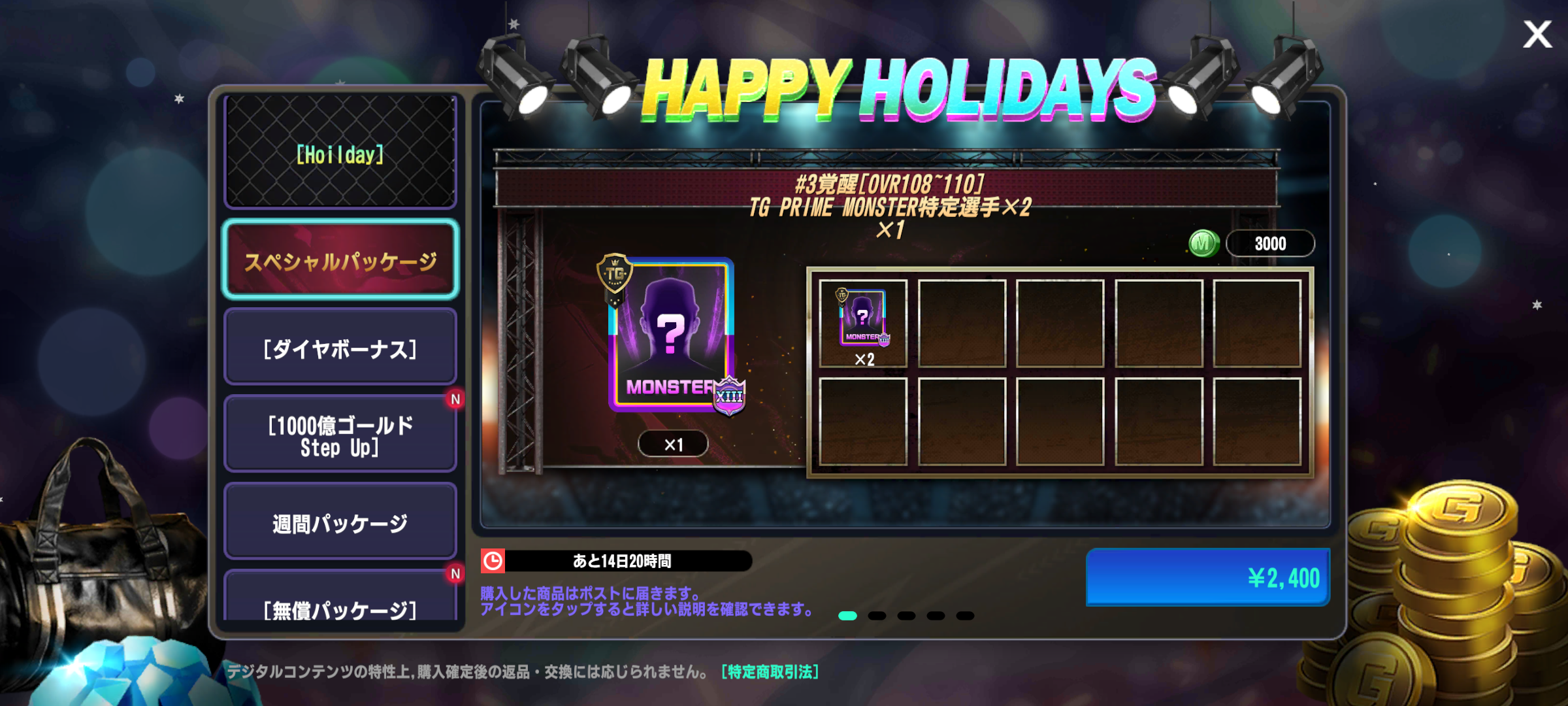 ・1種類のホリデーパッケージが追加されます。(12/31 18:02追記)