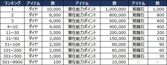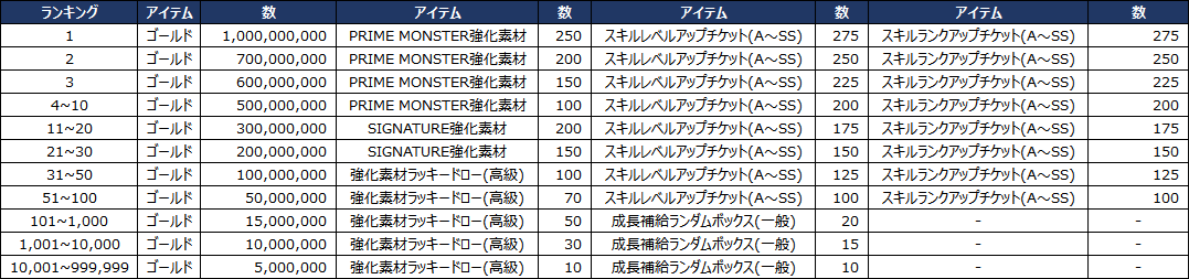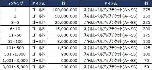 ・ランキング順位報酬受け取り期間:1月21日 11:00 ~ 1月28日 11:00(JST)