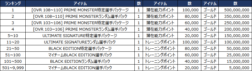 * [OVR110]TG PRIME MONSTERランダム選手パックおよび[OVR108~110]TG PRIME MONSTER特定選手から獲得できます。