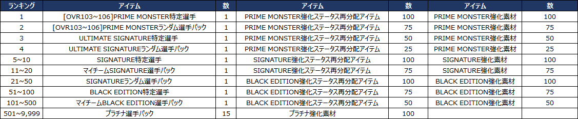 * 終了日時となった時点で一般コレクションに素材として登録されている選手は全て返還されます。