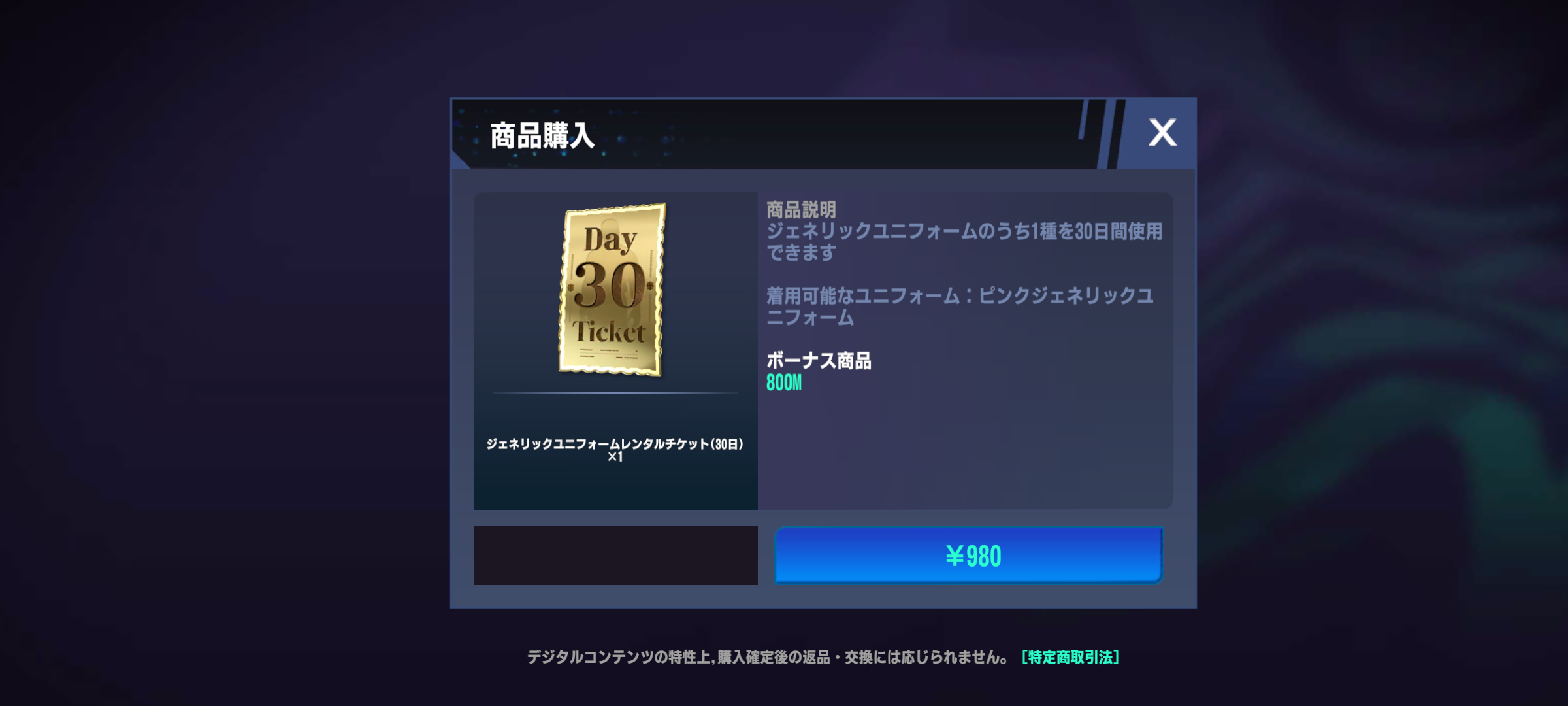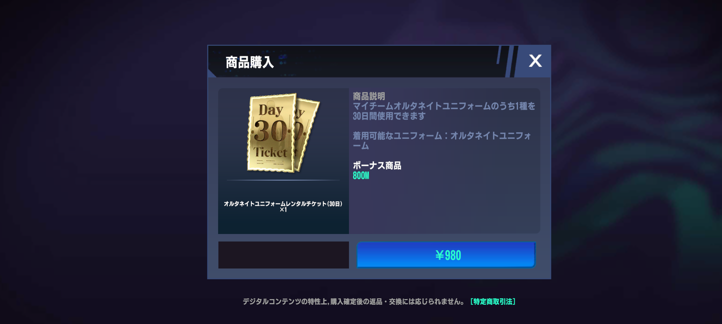 - オルタネイト/ジェネリックユニフォームレンタルチケットが50%割引された値段で販売されます。