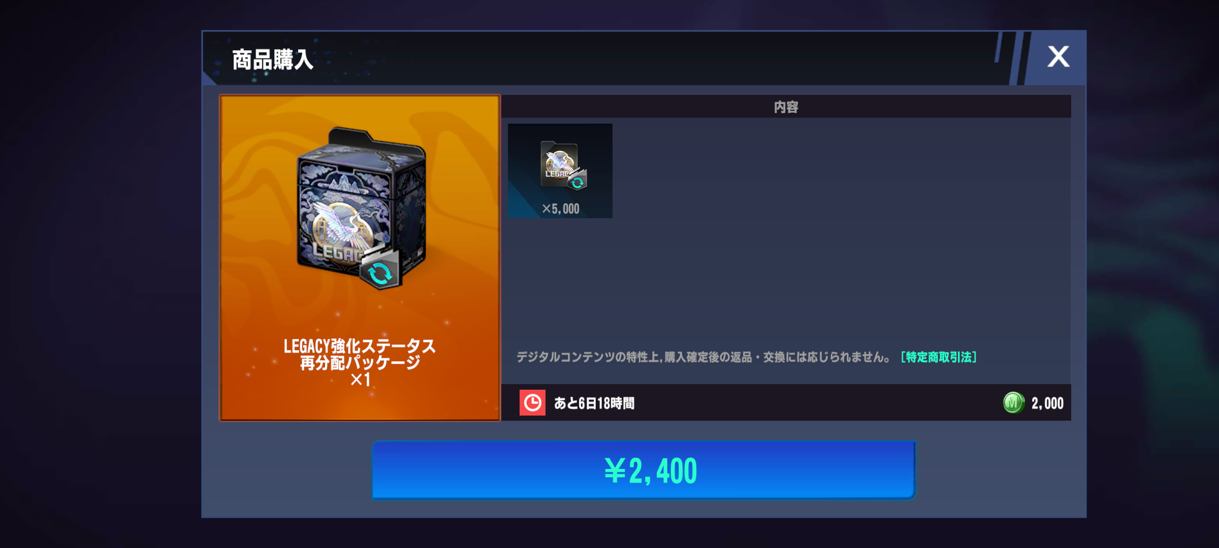 ・5種類のLEGACYパッケージが追加されます。(4/16 16:35修正)