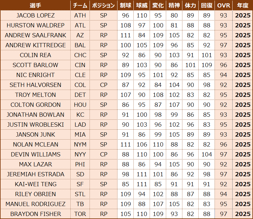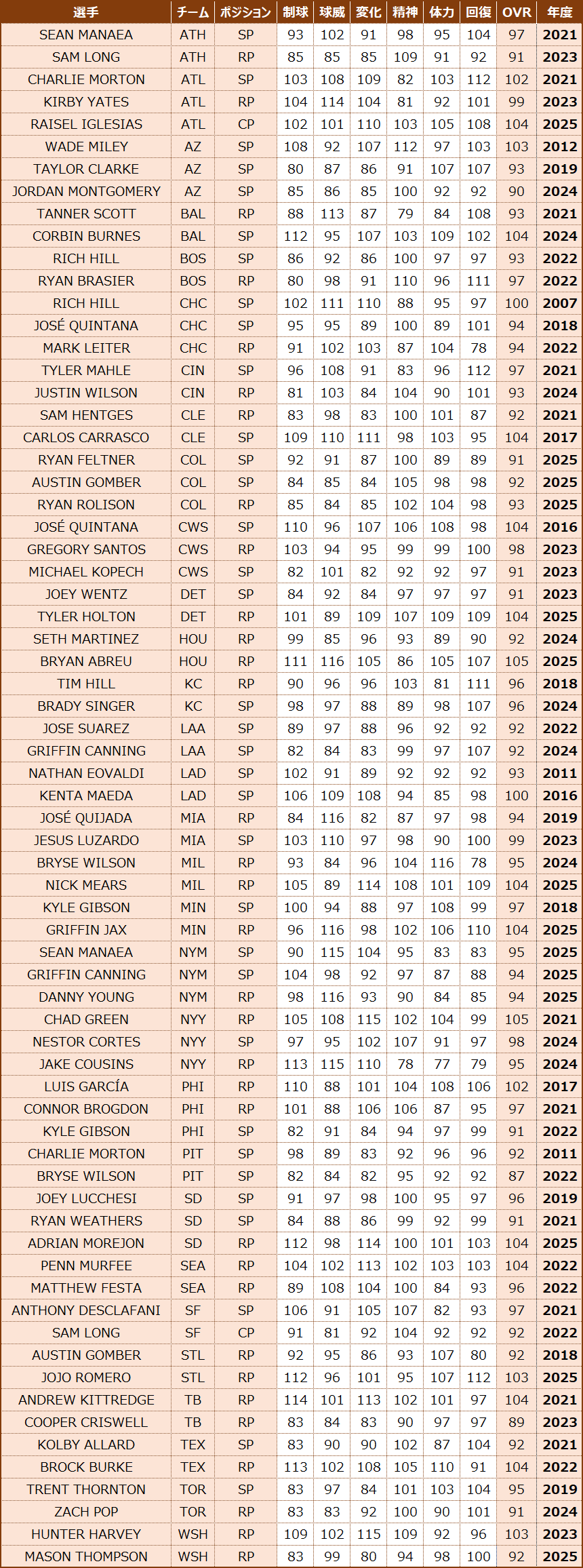 ・バトルスラッガーシングルバトルのシーズン41の投手がFREDDY PERALTA選手に変更されます。
