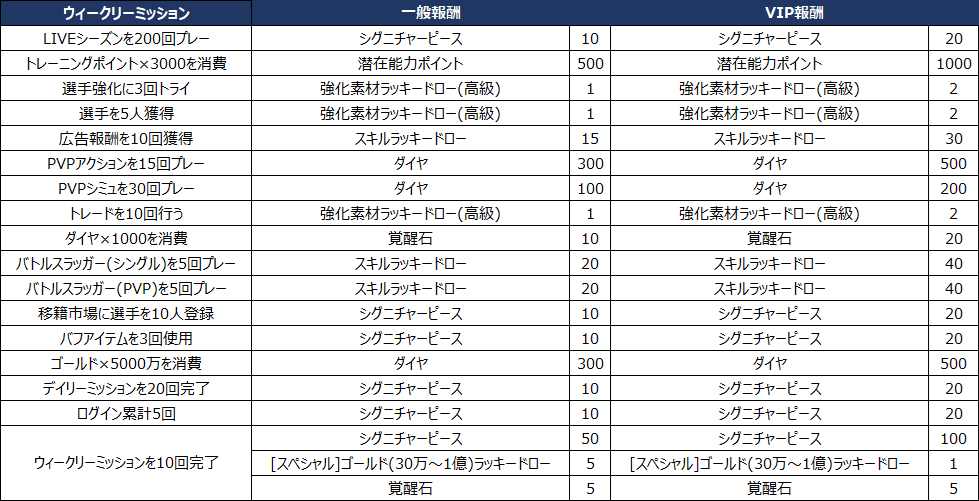 ・デイリーミッション / ウィークリーミッションの内容と報酬が変更されます。