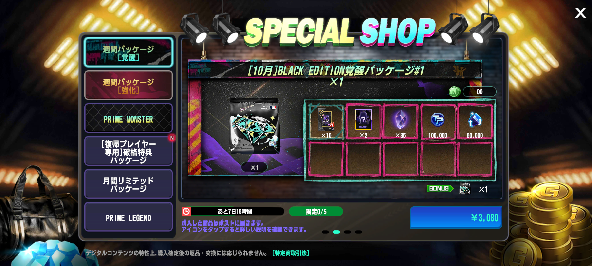>SEランク:プラチナ、FUTURE STAR、BLACK EDITION、PRIME MONSTER