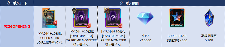 SUPER STAR選手カード、新規イベント/キャンペーン、商品の追加およびリニューアルのために、4月2日にアップデートメンテナンスを実施する予定です。