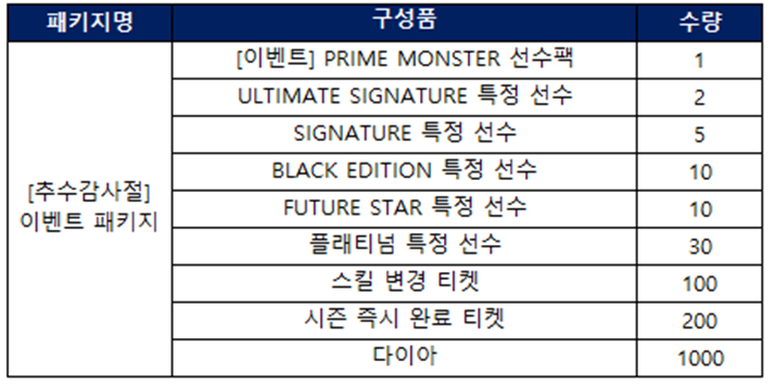추수감사절을 기념하여 무료로 제공되는 이벤트 패키지를 구단주님께 소개드립니다!🎉🎉