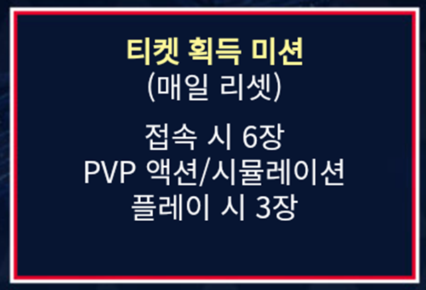 - 이벤트 티켓은 미션 조건 달성 시 자동 지급됩니다.