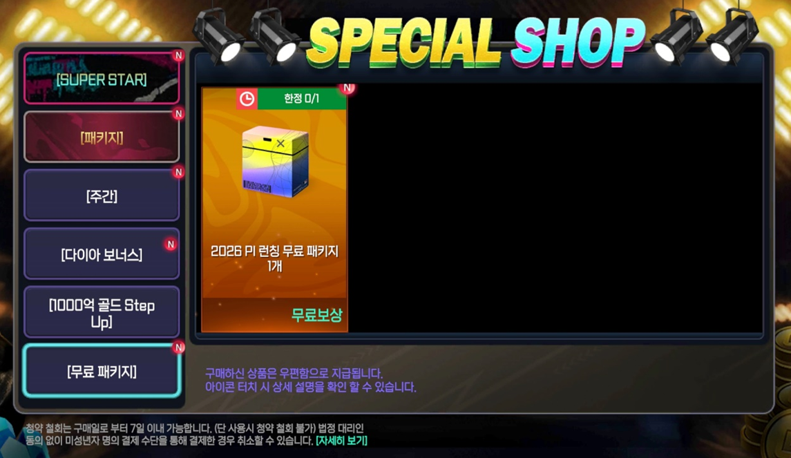 - 2026 런칭 무료 패키지는 [메인 로비]→[SPECIAL SHOP] →[무료] 탭에서 무료로 획득 가능합니다.