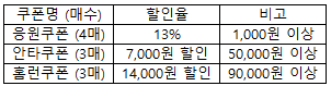 - 쿠폰 5종 이상 사용 유저에게 추가 쿠폰 지급