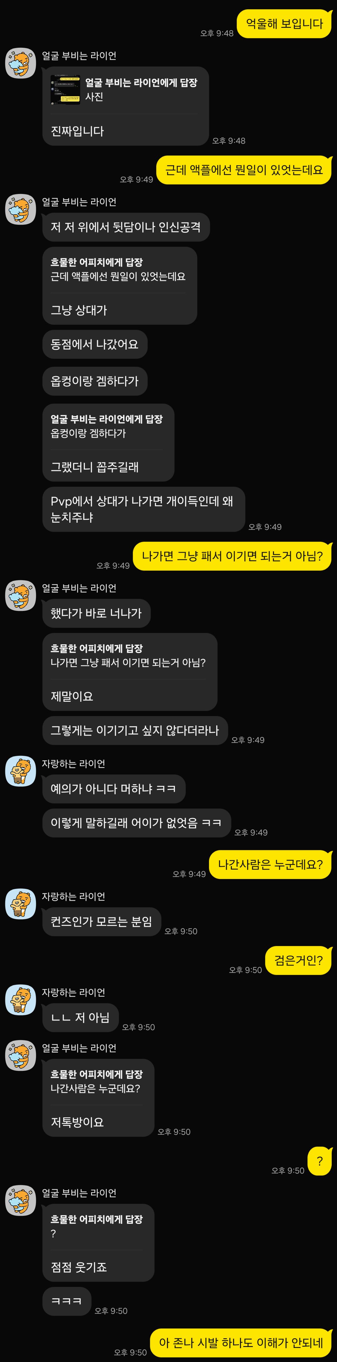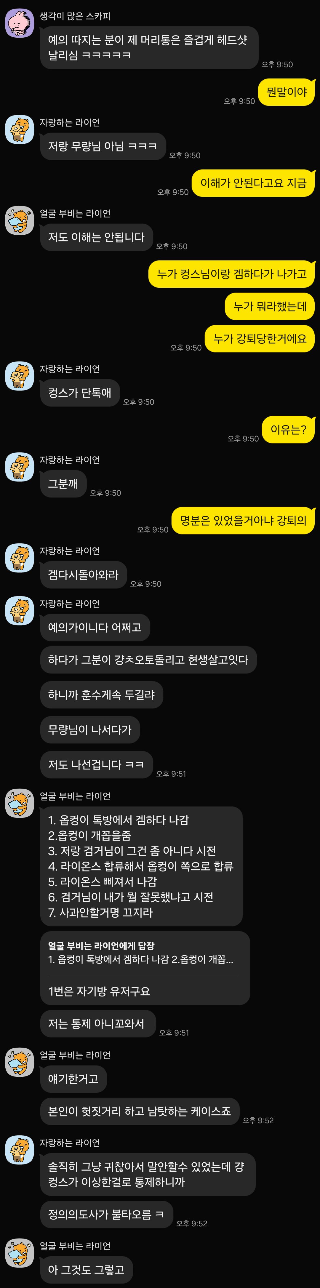 그리고 강퇴당한 멤버들이 당연히 억울하니 우리 방 와서 이럴수가있냐고 하소연하자 등장해서 아사리판