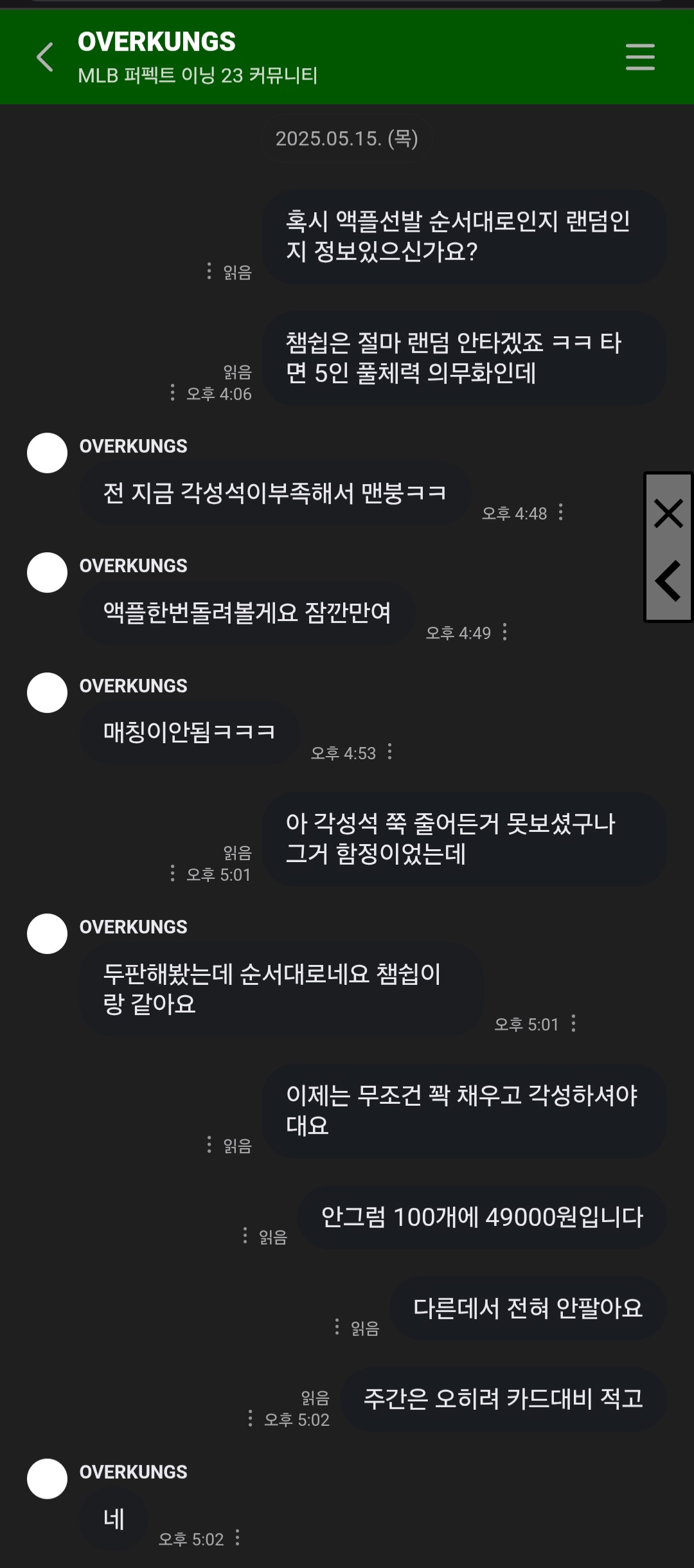 대화내용 보시면 아시겠지만 팬카페 개인챗을통해 정보를 교류하고 의견을 나누는 평범한 겜내 지인 사이처럼 보였죠.