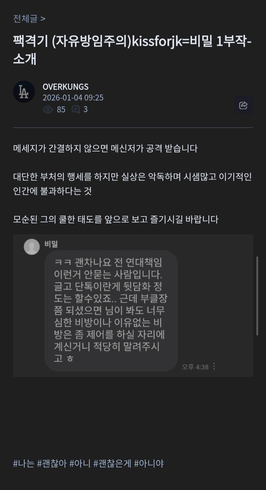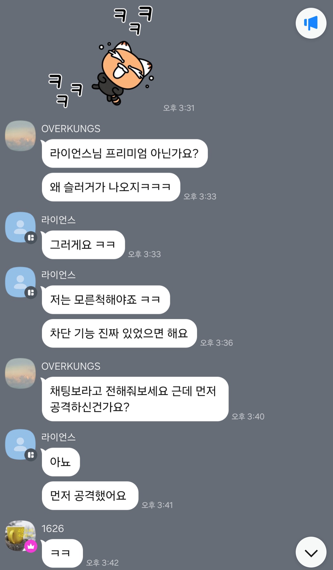 그런데 그 수위가 상상을 초월합니다. 불과 며칠전까지 서로 갠챗까지 주고받으며 도란도란하다가
