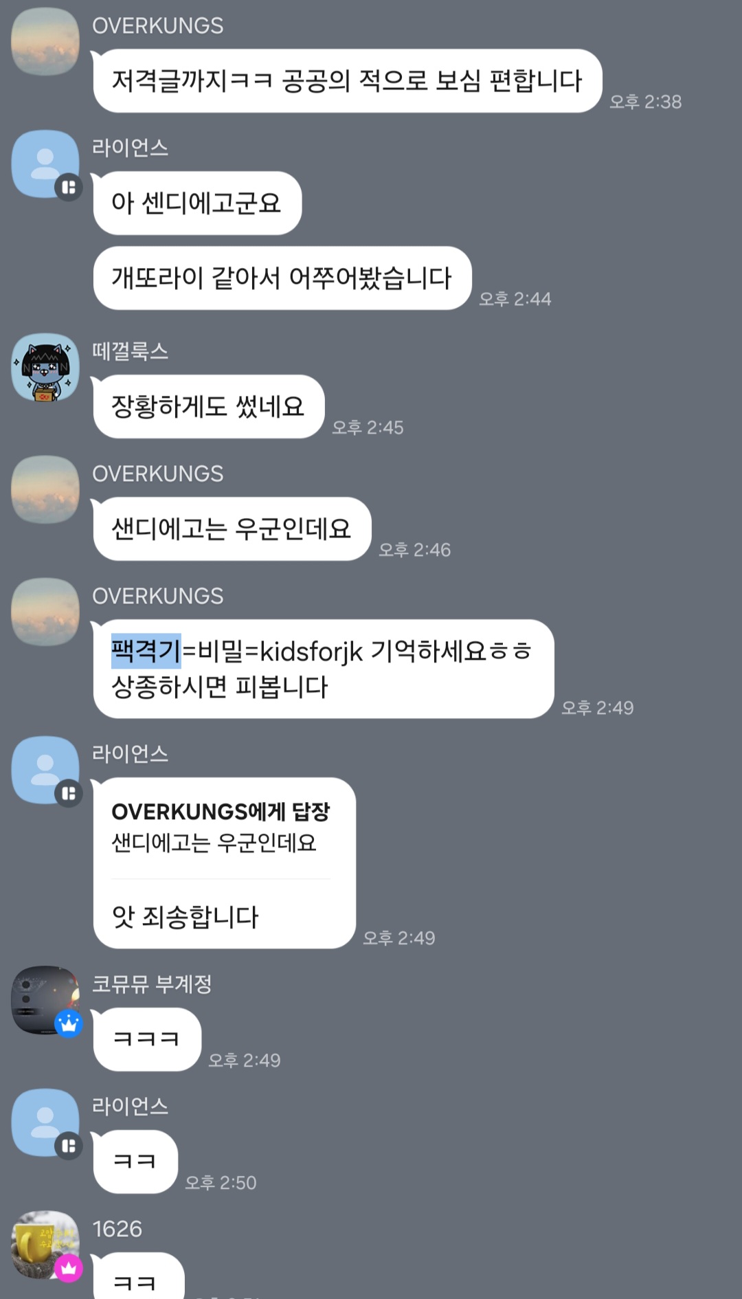 다름아닌 OVERKUNGS=Matryoshka와 이준혁 때문에 분쟁났을대 사과와 중재를 받은 대화내용 중 일부였조.
