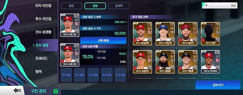 선수 강화시, 거래가능선수와 거래불가선수를 조합해 강화하면 제시된 강화성공확률(79%)에 관계없이 실패가 되는 버그가 있는 것 같습니다.