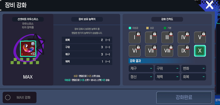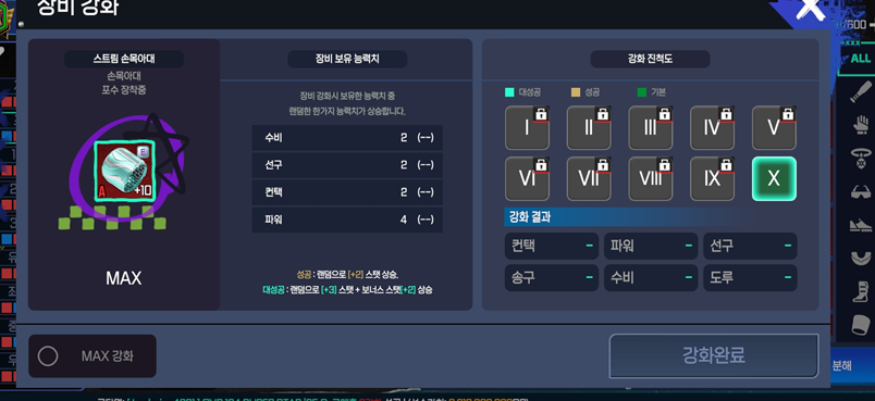 - 장비 강화 MAX 진행