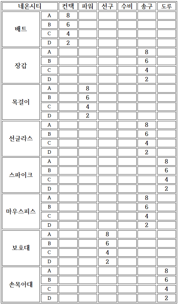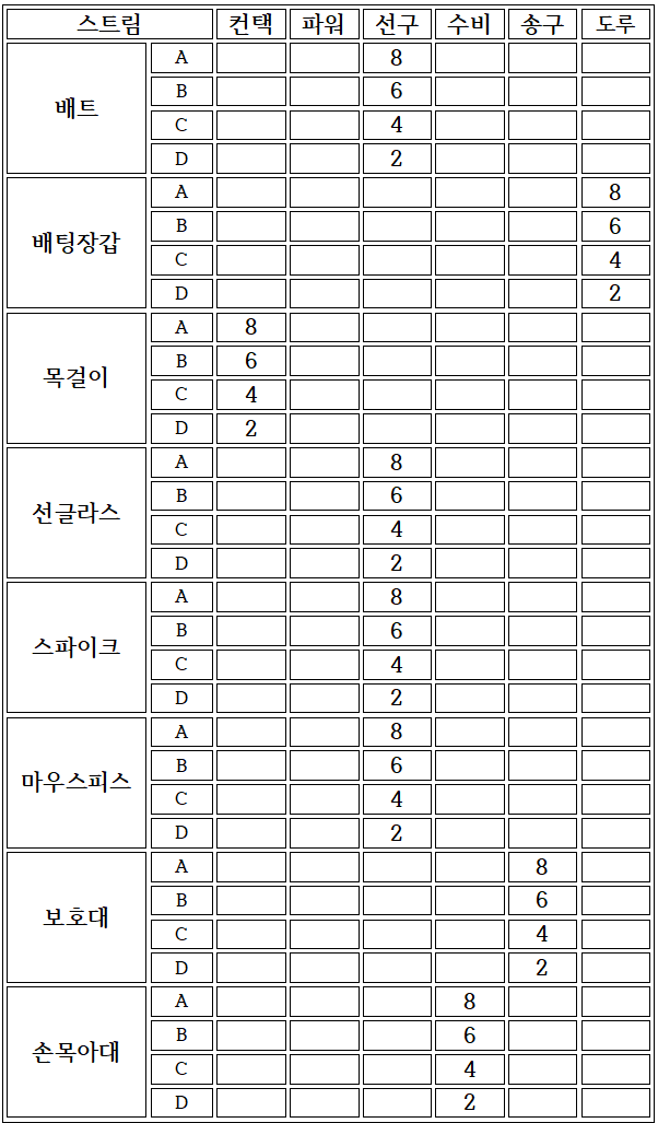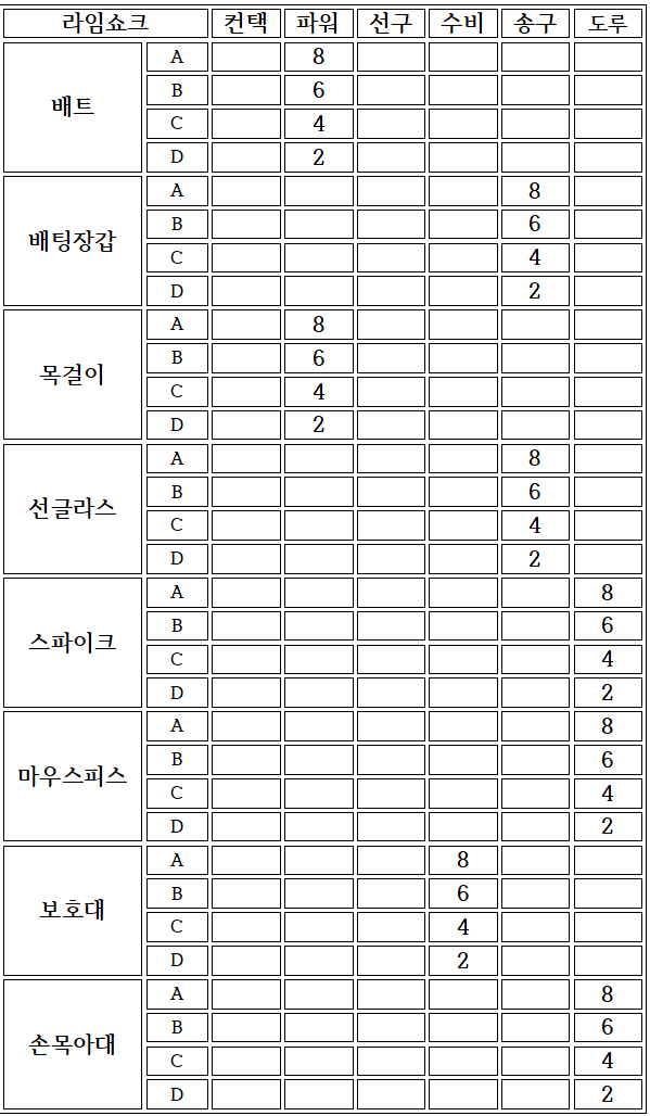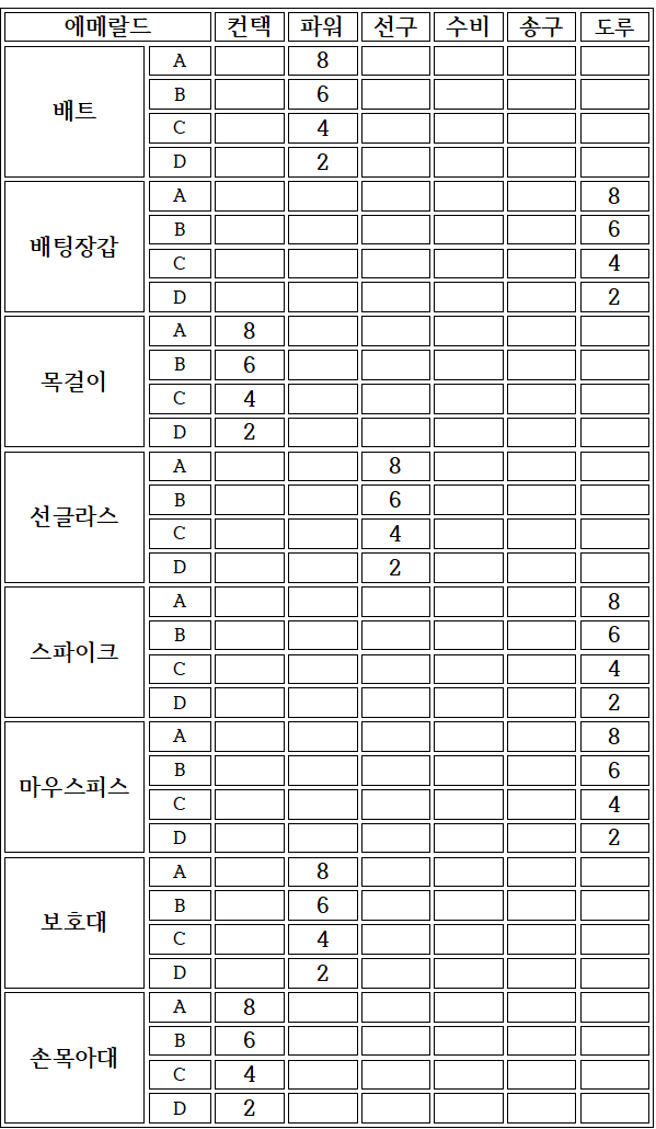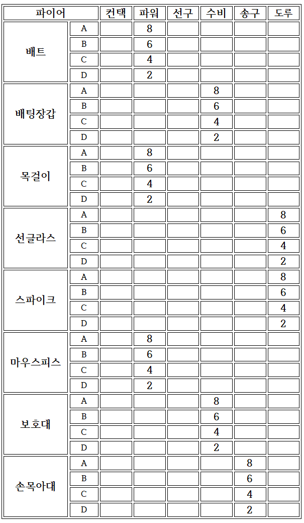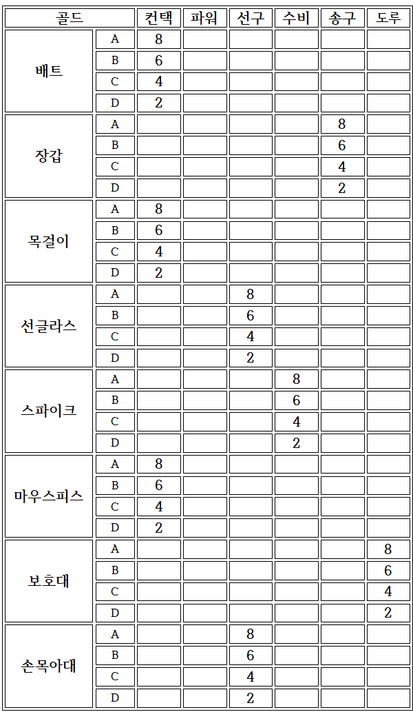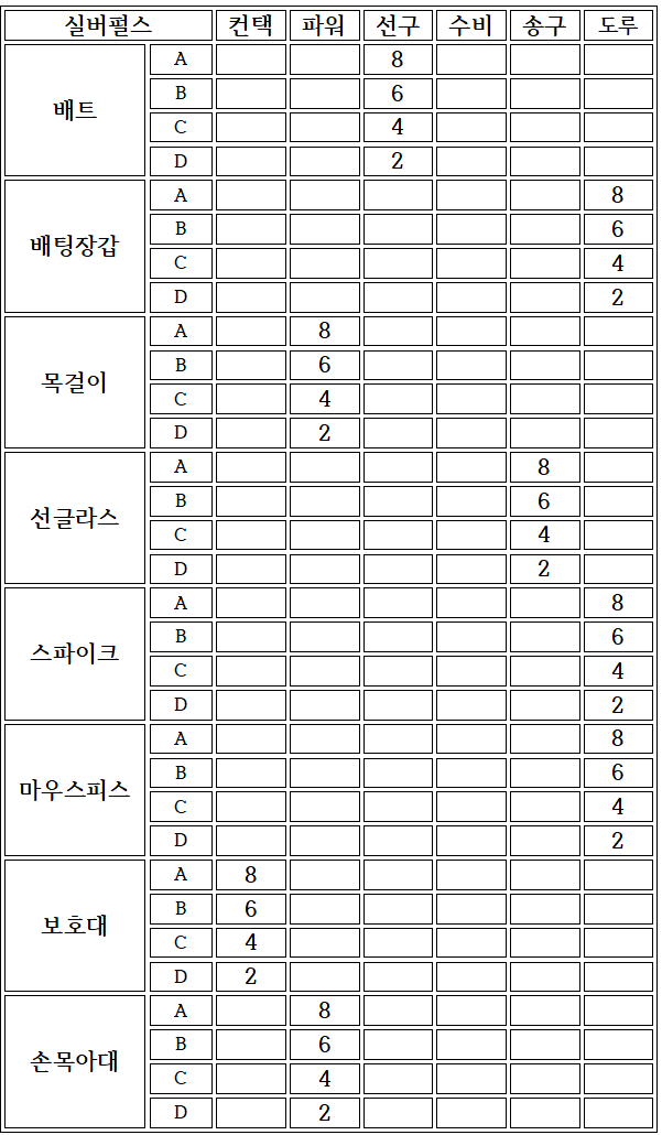 ∗ 추후에 추가될 등급에 대비하여 나머지는 공란으로 작성함.