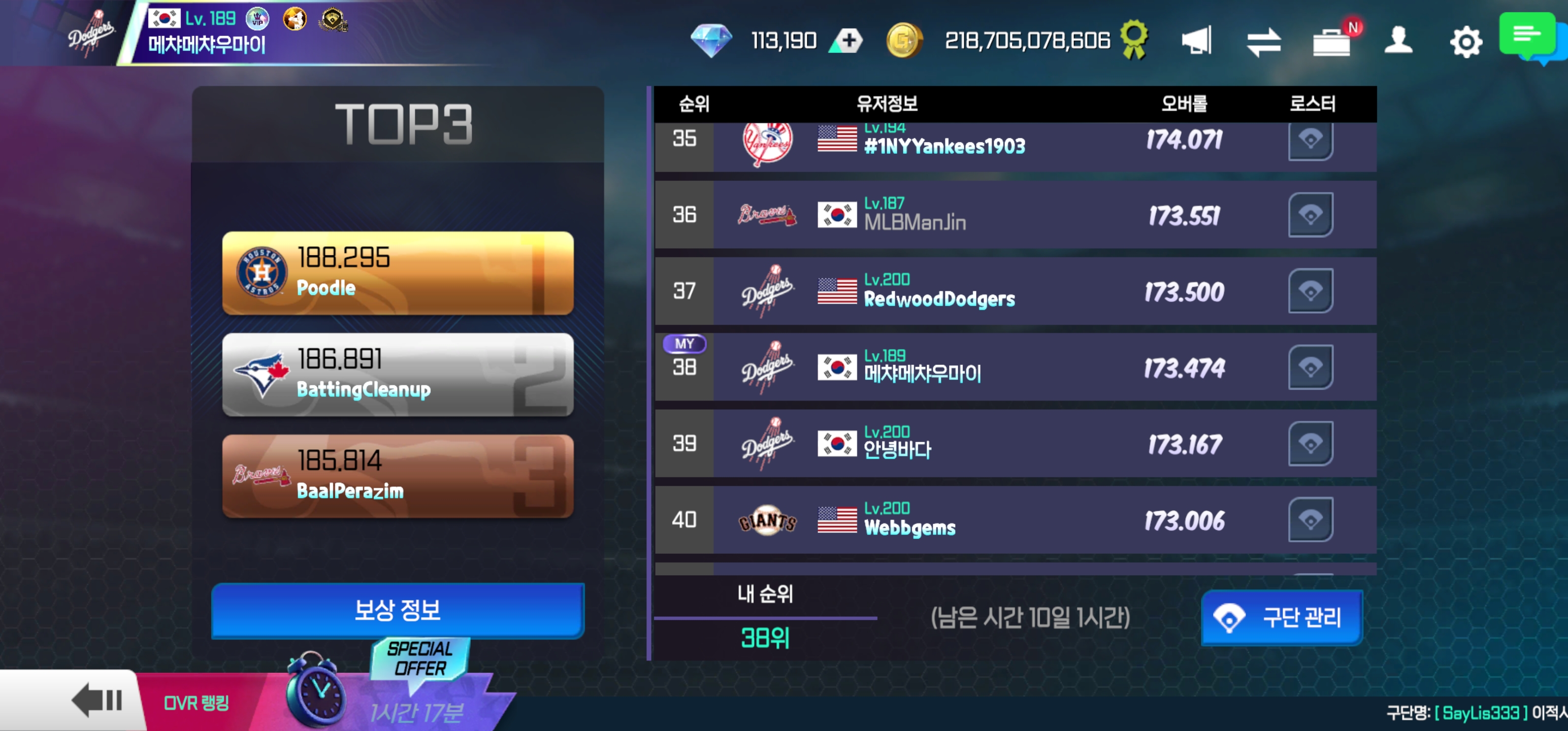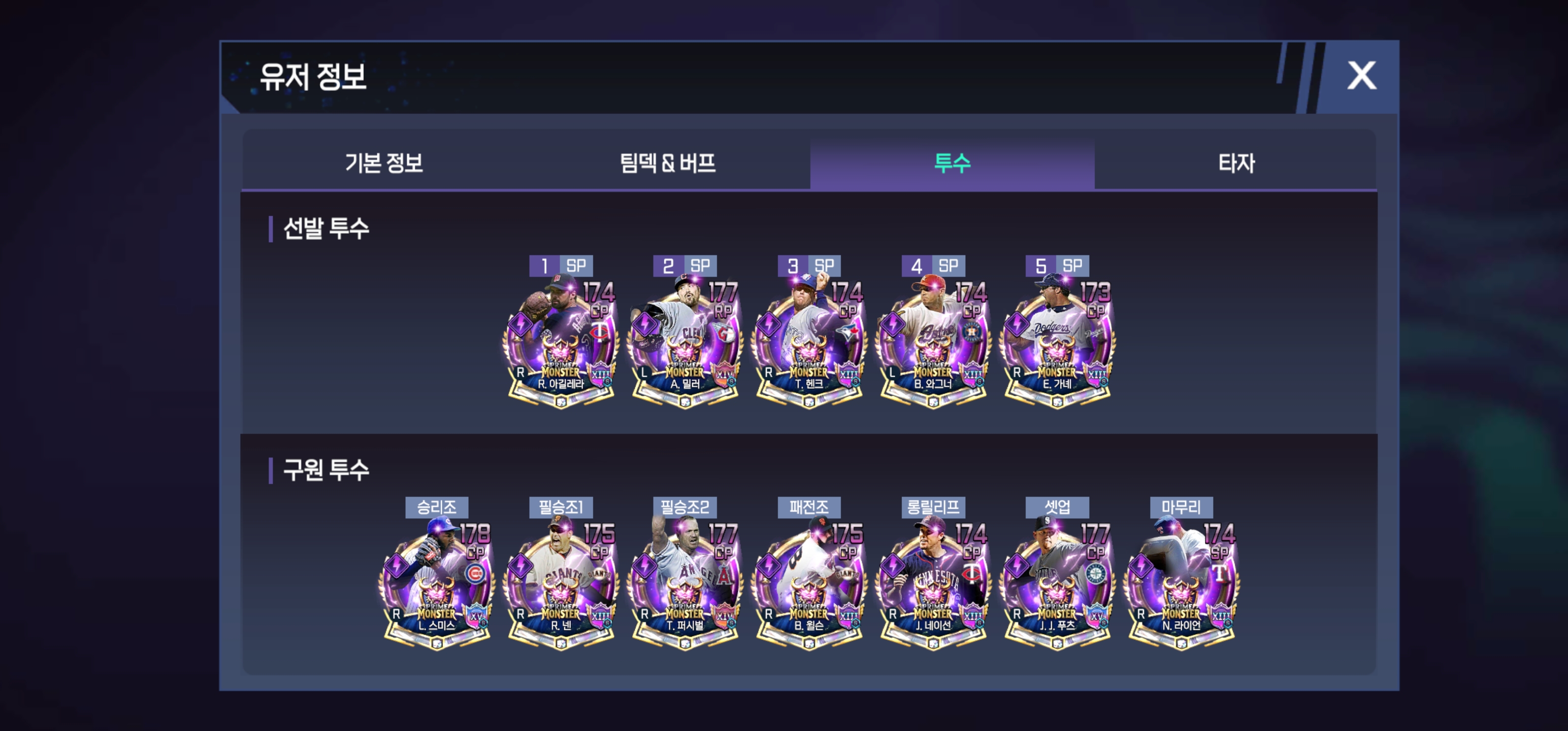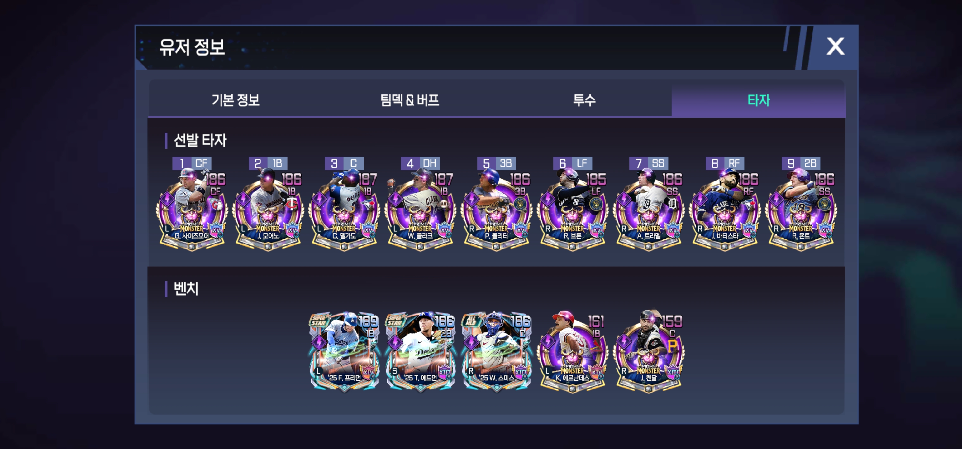 그리고 타자는 컨택이 115이상 투수는 제구115이상과 직구구속95마일이상 구위 110에 충족하면 1티어급입니다. TG프몬 기준입니다.
