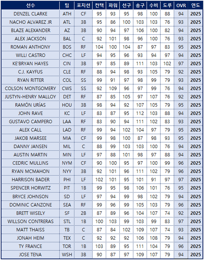 안녕하세요. MLB 퍼펙트 이닝 25입니다.