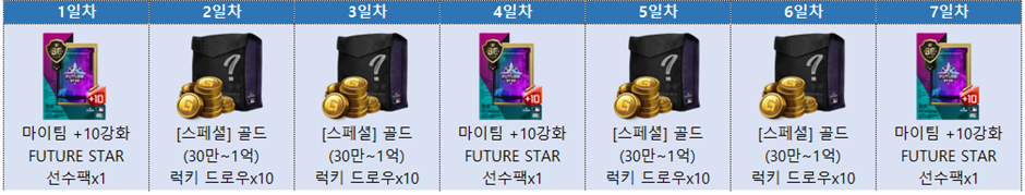 - 출석 적용 기간: 이벤트 기간 내 최초 로그인 시점부터 7일간 적용