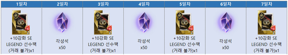 - SE PRIME LEGNED 선수 카드는 강화 성공시, 다른 SE 카드보다 더 많은 스탯을 획득할 수 있습니다.