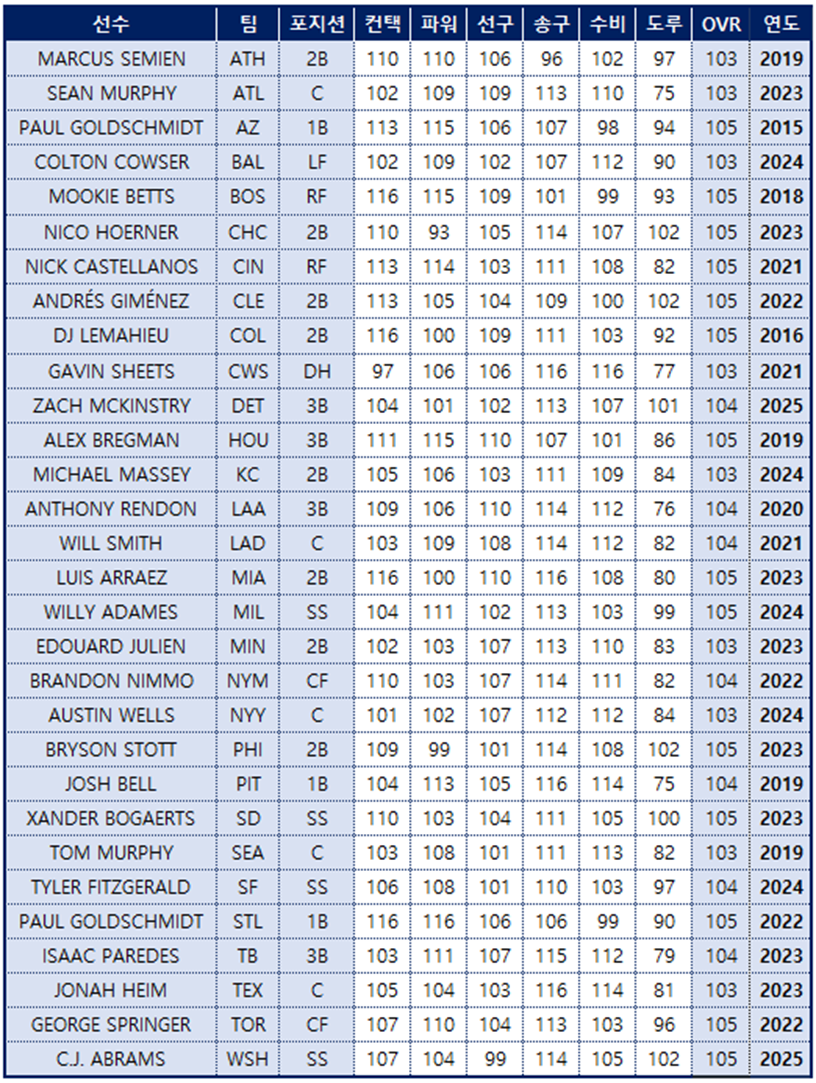 안녕하세요. MLB 퍼펙트 이닝 25입니다.
