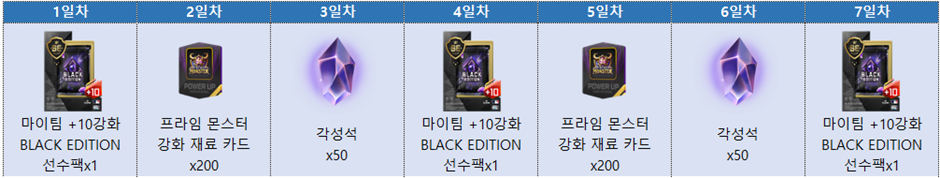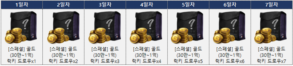 - 출석 적용 기간: 이벤트 기간 내 최초 로그인 시점부터 7일간 적용