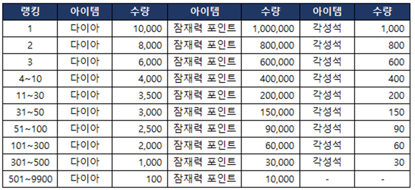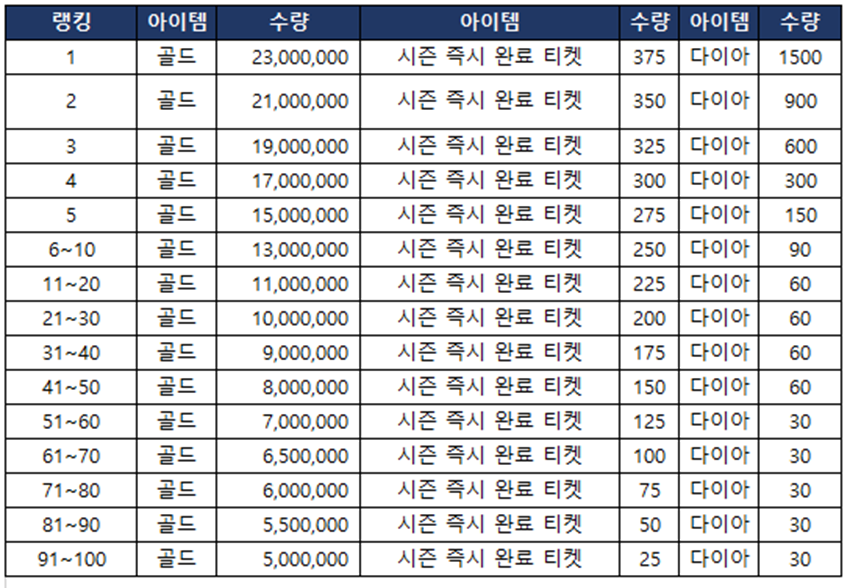 > 시즌 순위 보상