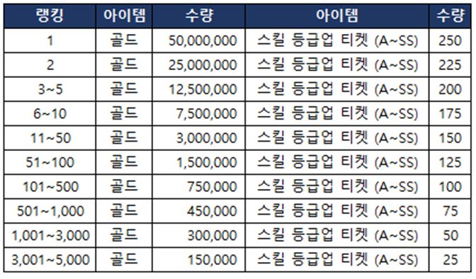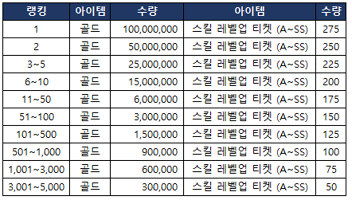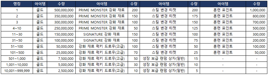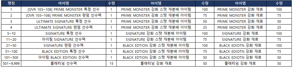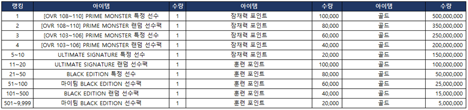 > 클럽 랭킹전 보상