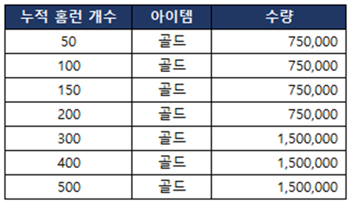 - 이벤트 내용: 시즌 경기, 홈런 더비, 올스타전 경기 완료 시 보상 2배