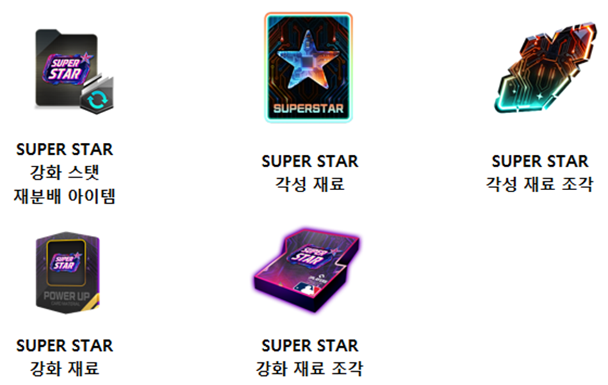 > SUPER STAR 각성 재료 : SUPER STAR 등급 선수 카드 각성에 사용되는 재료입니다.
