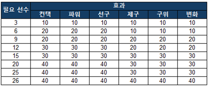 CORE 특수 팀덱 적용 대상 : 로스터 내 모든 선수 카드(1/29 임시 점검을 통해 수정 완료)