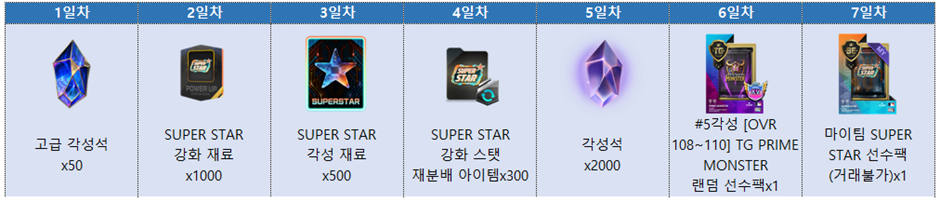 > 마이팀 SUPER STAR 성장 지원 출석 [다이아]