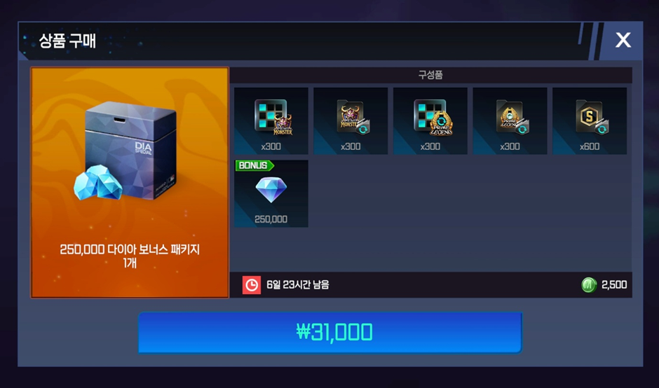 - 다이아 보너스 패키지 5종이 리뉴얼 됩니다.