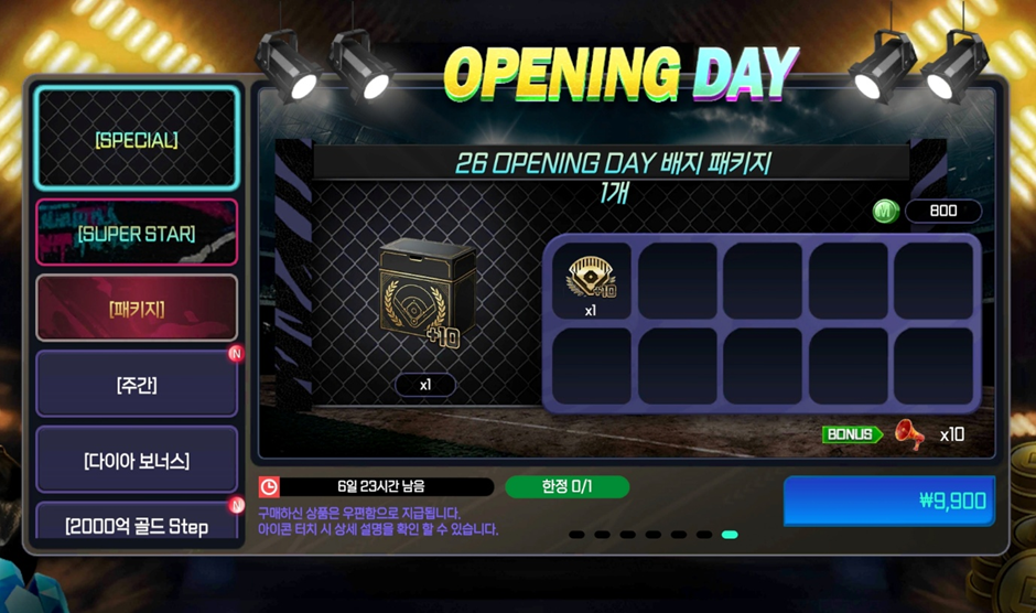 보너스-26 OPENING DAY 응원 코인 80개 + 다이아 300000개