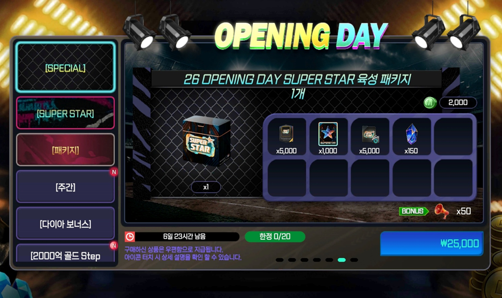 보너스-26 OPENING DAY 응원 코인 50개 + 다이아 200000개