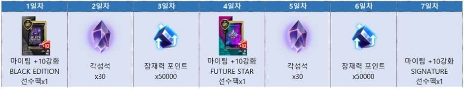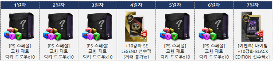 - 보상: 마이팀 +10강화 BLACK EDITION 선수팩 (거래 불가) x1