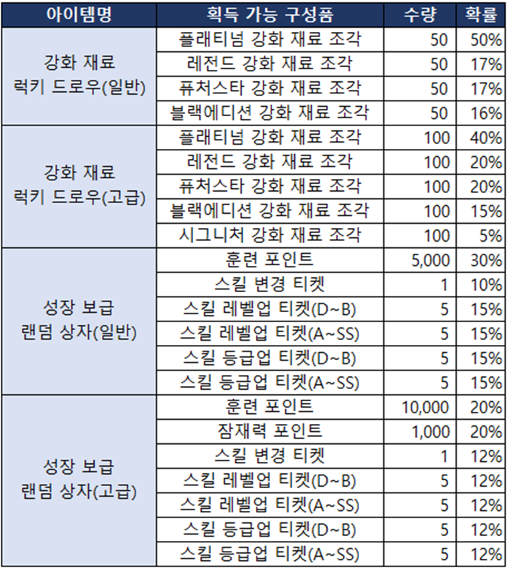 - 이벤트 내용: 선수 카드 훈련 시 초월 성공 확률 2배& 대성공 확률 9.8% 적용