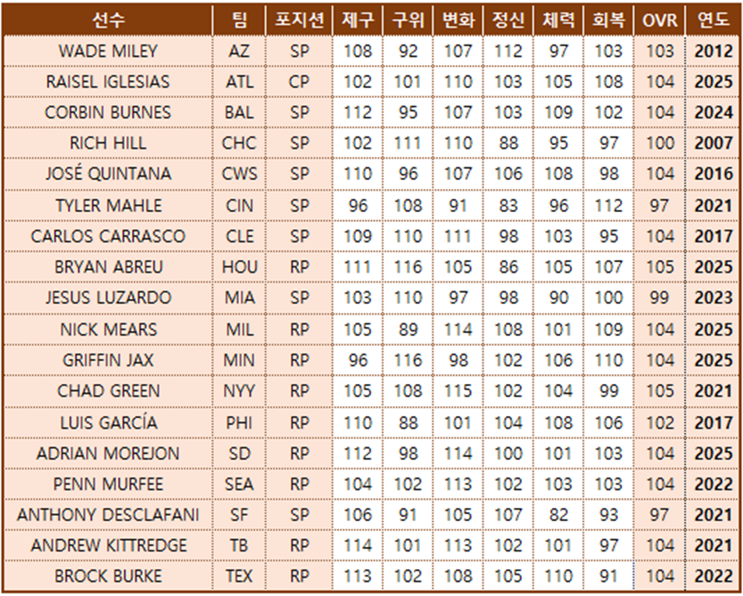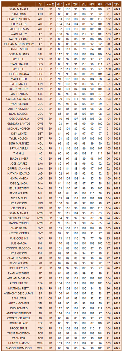 - 배틀슬러거 싱글 배틀 시즌 41의 투수가 FREDDY PERALTA 선수로 변경됩니다.