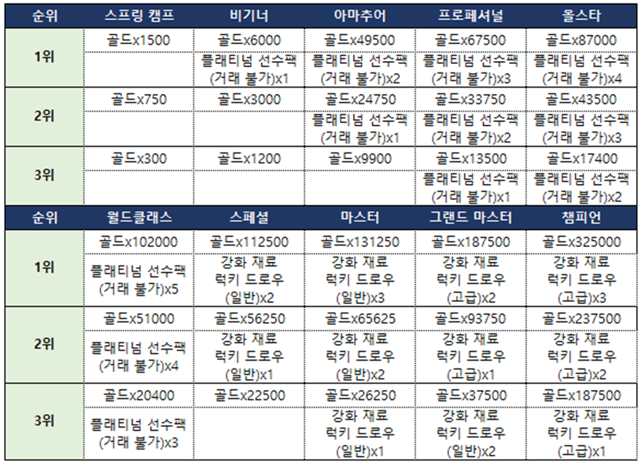 - 랭킹 순위 보상 수령 기간: 10/15(수) 11:00 ~10/22(수) 11:00