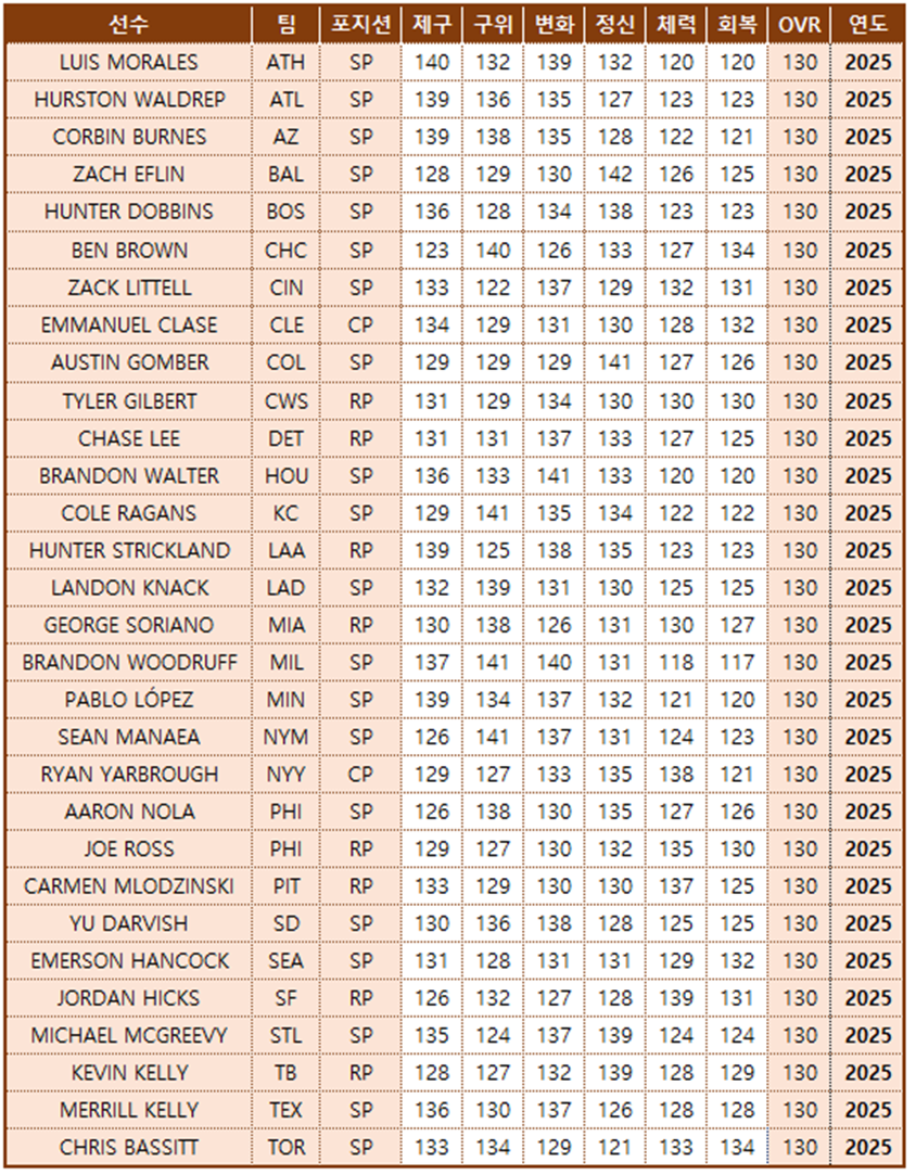 - 유니폼 착용 시, 구단 투수의 구위, 제구, 변화 능력치가 +10 적용됩니다. (기본 유니폼 제외)