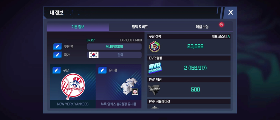 안녕하세요. MLB 퍼펙트 이닝 26입니다.