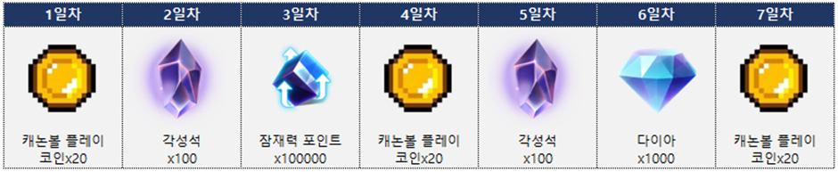- 이벤트 내용: 이벤트 기간 동안 접속 시 출석 보상 획득
