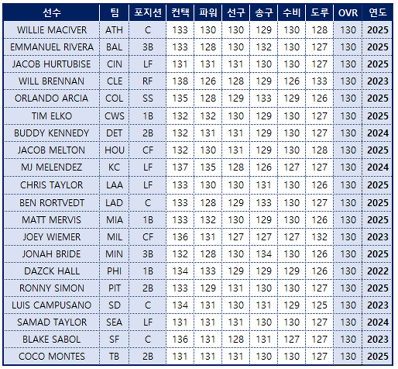 - LAA, SEA, CLE, PHI, TB 구단의 시티 커넥트 유니폼이 추가됩니다.